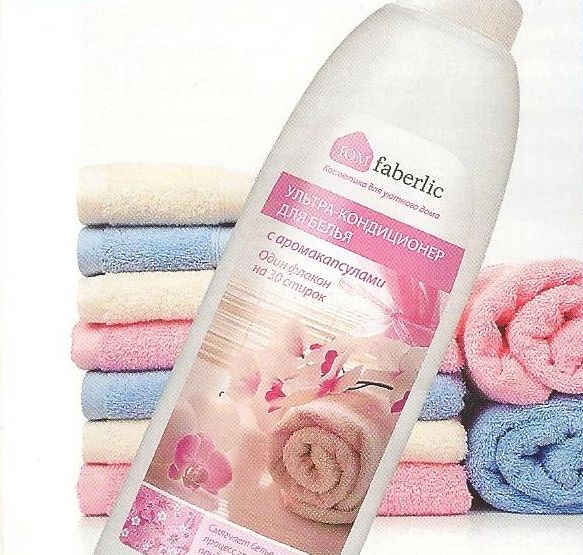 Удивительный продукт в каталоге Faberlic. Ультракондиционер для белья с аромакапсулами выполняет не только традиционные обязанности кондиционеров - сообщает тканям допалнительную мягкасть, облегчает глажку, снимает статическое, электрическое напряжение и продлевает срок службы одежды, но и придает вещам нежнейший цветочный аромат, который раскрывается по мере их использования, только представте, Вы одеваете свежепостиранную блузку и постепенно по мере соприкосновения с вашим телом, ее свежий аромат только усиливается! Фантастика? Ароматические молекулы, которые раскрываются и отдают аромат в момент трения. Из другх достоинств Ультракондиционера с аромакапсулами (Арт;11037) стоит упомянуть его биоразлагаемость, экологичность (не содержит фосфаты, хлор, и красители) и экономичность (одной упаковки хватаетна 30 стиррк).