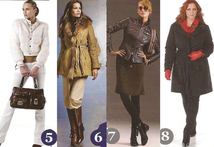 Самый элегантный выбор - зимнее пальто. Причем, классической модели, из тех, что не выходят из моды. Вот основные отличительные признаки такого пальто, во-первых оно «никакого» стиля, прямре или чуть приталенное, со съемным поясом, обичным отложным или рубашечным воротником (рис. 3). Логика простая, классическое пальто типа «чистый лист» просто сочетать с одеждой разных стилей. Во-вторых, нужен простой фасон, легко сочетающийся с одеждой разного кроя. Например: приталенное шпальто до колена с V-образным вырезом (без всяких дополнительных «наворотов») одинаково хорошо смотрится и с платьями, и с брюками, и с сапогами, и с ботильонами, с водолазками или блузками, в-третьих, оптимальны нейтральный цвет.(бежевые оттенки, черно-серая гамма, приглушенный синий) и фактура ткани. Но не спешите искать униформу советской проводницы - простое нейтральное пальто тоже может быть интересным: двубортным, с широким воротником из ткани с ворсом. В общем, главное, чтобы оно подходило «по-до, все» (рис. 4) а не слыло «верхом оригинальности».