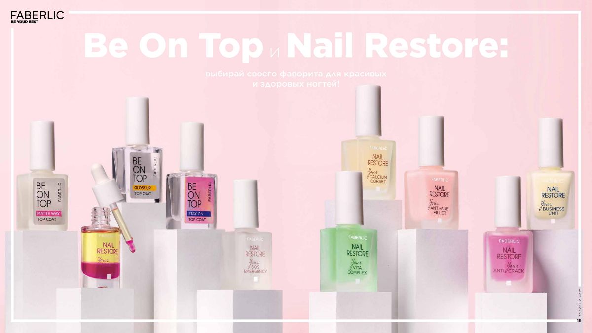 Выбирай свое средство из серий Be On Top и Nail Restore от Faberlic!