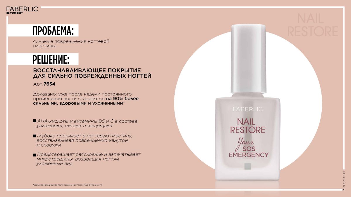 Укрепить ногтевую пластину, устранить заусенцы, вернуть маникюру красоту и блеск или даже продлить его стойкость – это лишь некоторые из задач, с которыми легко справятся продукты серий Nail Restore и Be On Top от Faberlic!