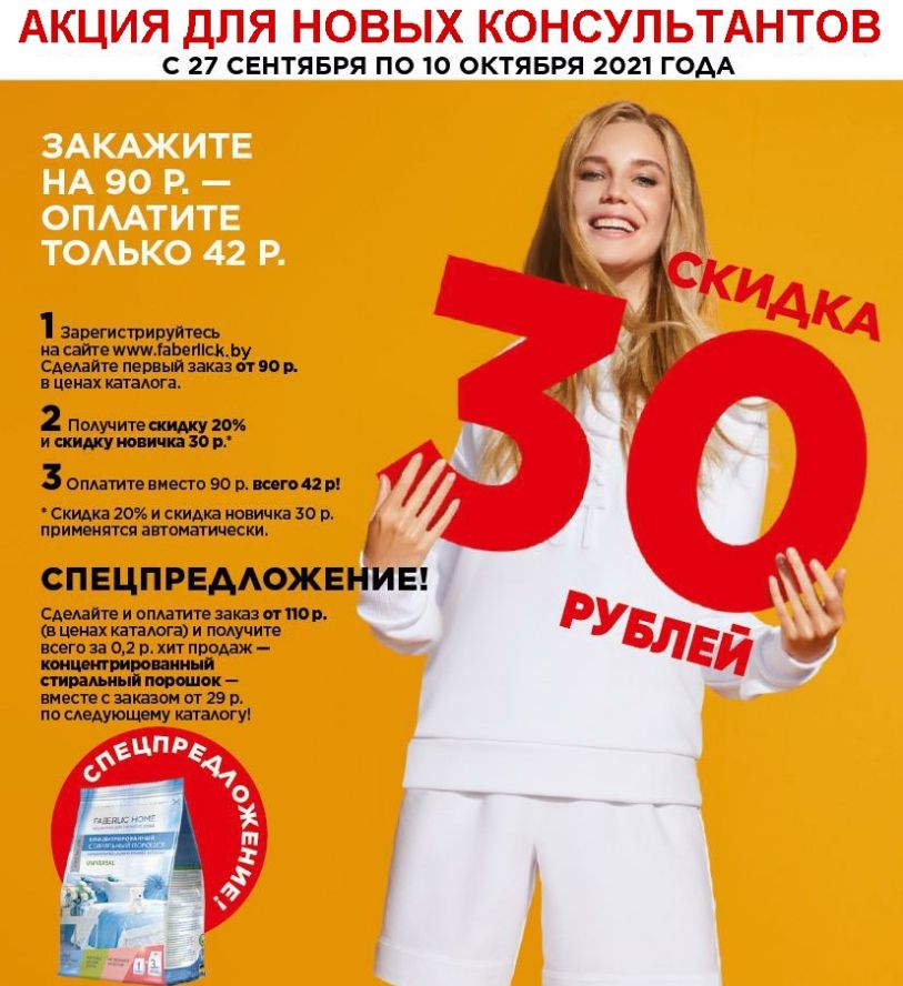 ШАГ 1) Зарегистрируйтесь на сайте faberlick.by >> с 27 сентября по 10 октября и оформите первый заказ от 90 руб. для Беларуси или 2 500 руб. для России в ценах каталога.