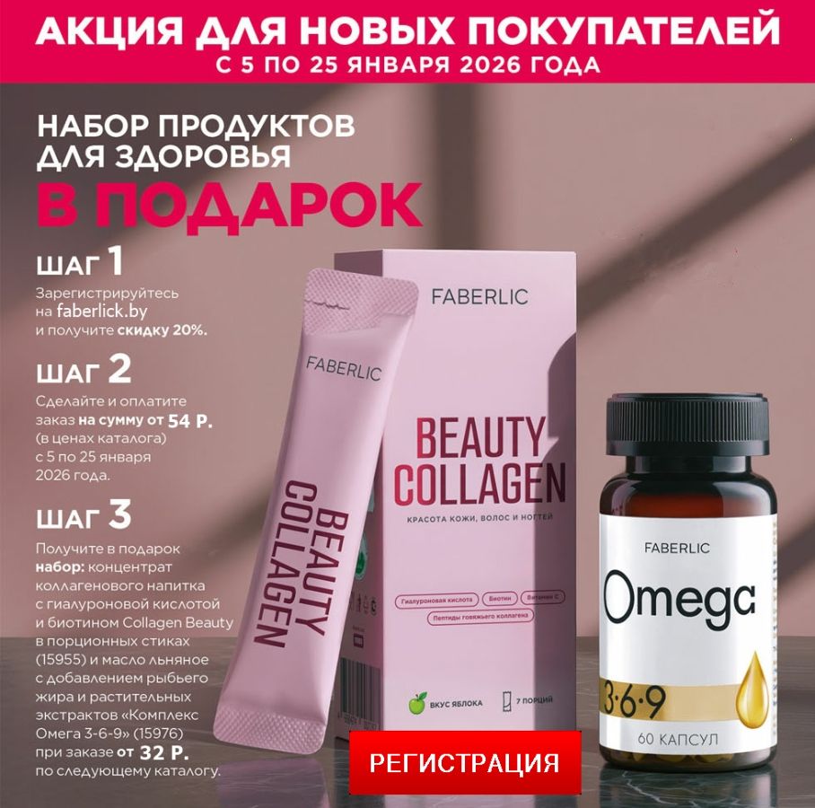 ШАГ 1) В период каталога №1 (С 5 по 25 января 2026 г.) зарегистрироваться в Faberlic >> и получить скидку 20-26% от стоимости заказа на всю продукцию Фаберлик.